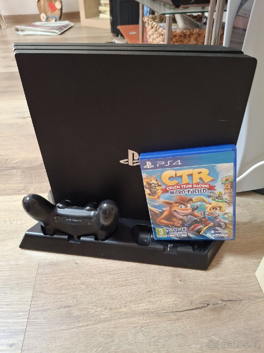 Prodám ps4 pro 1TB,vyčištěný přepastovaný odbornou firmou. 1×hra, dokovaci stanice s ventilátorem, 1×ovladač