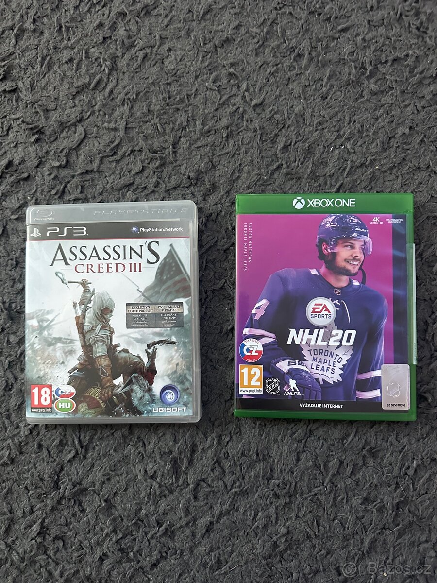 Prodám hry, NHL 2020 na xbox one v top stavu a Assassins creed 3 na ps3 cenu nabídněte.