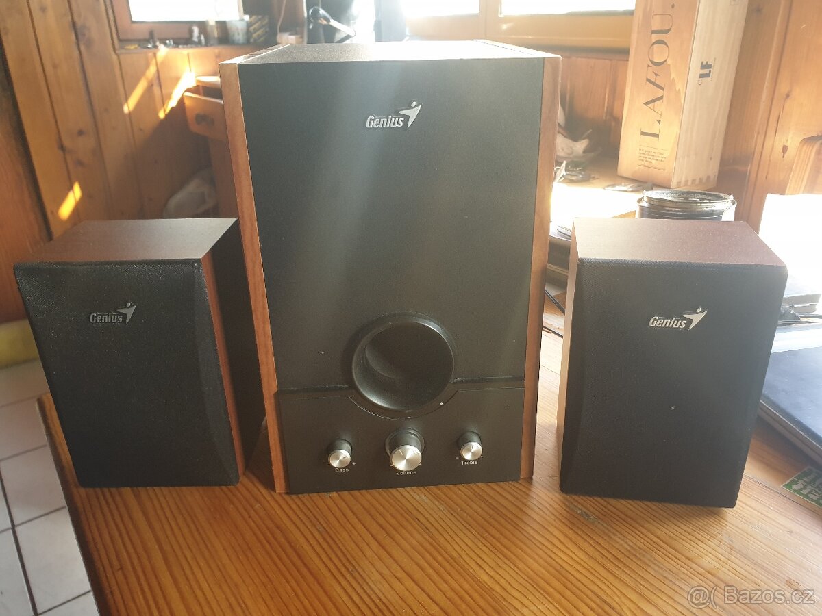 Reproduktory subwoofer, výšky basy, hlasitost. Označení Genius multimedia speaker system SW-HF 2.1 1700.