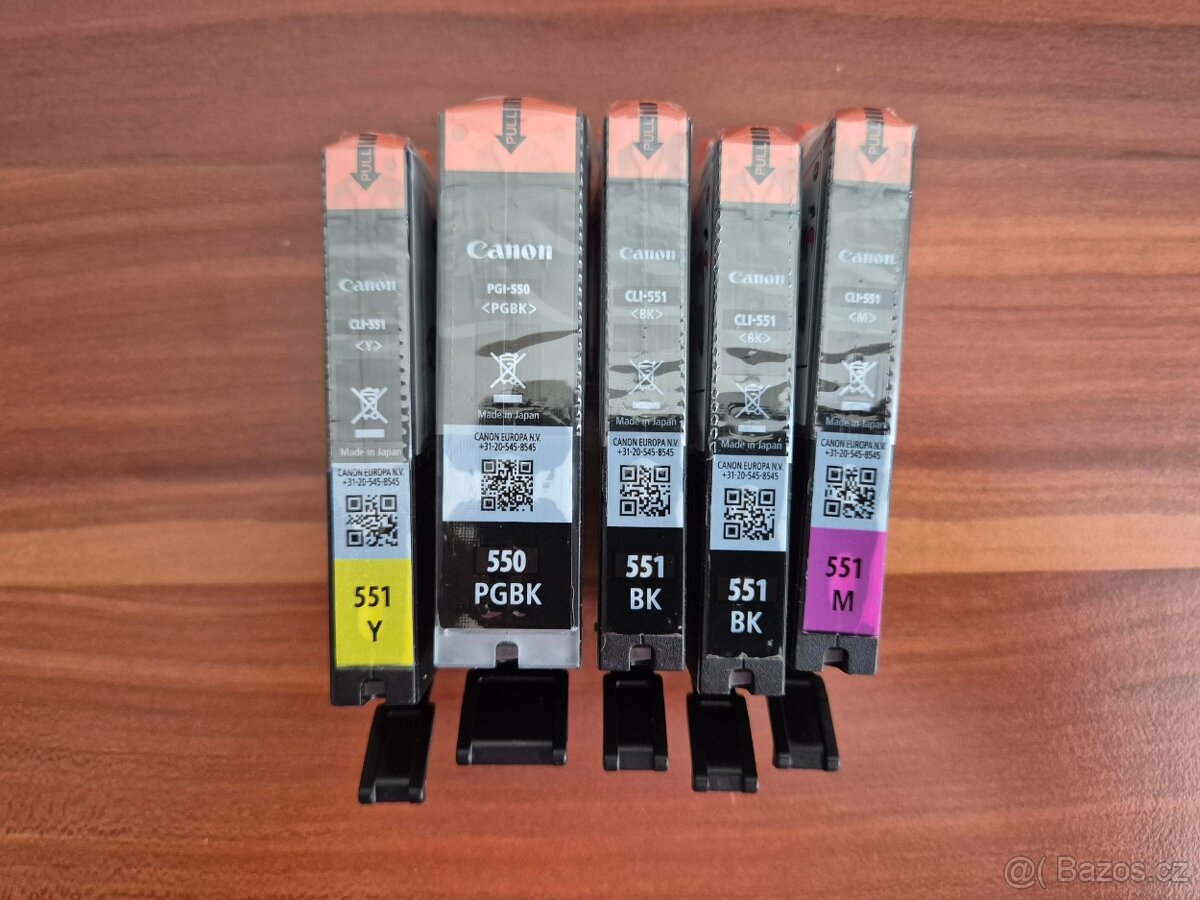 Originální nevyužité náplně. Velká černá PGI550, 2 x černá CLI551, 1x žlutá CLI551 a 1 x purpurová CLI551M