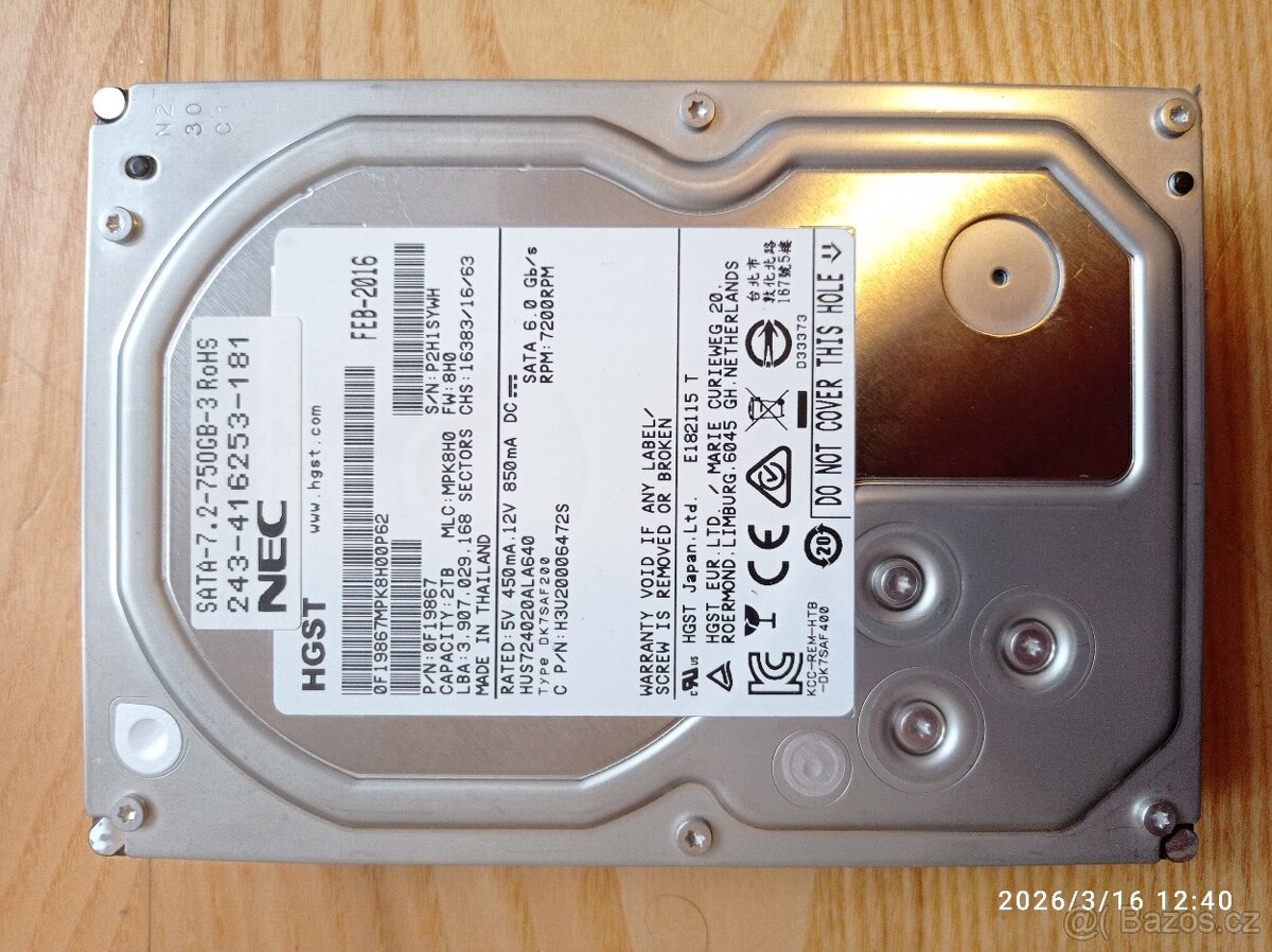 Prodávám spolehlivý pevný disk HGST HEC 2TB. Vhodný pro ukládání velkého množství dat: filmy, hry, pracovní soubory nebo zálohy.